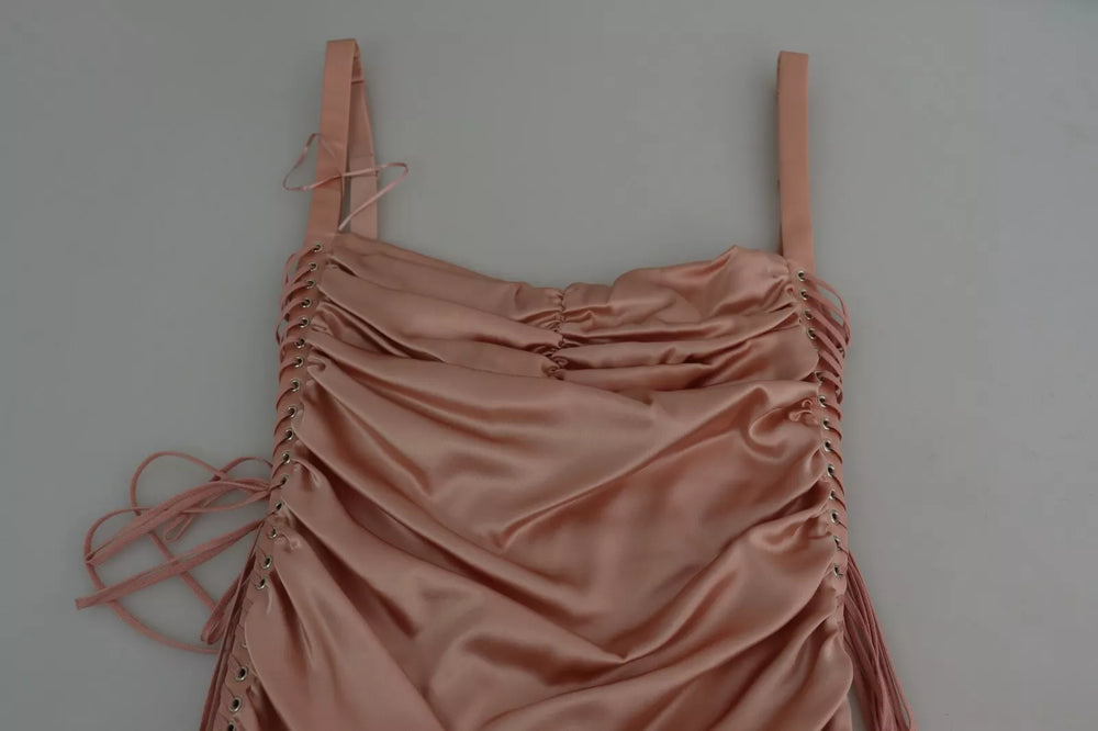 Gorgeous, 100% Authentic Dolce & Gabbana pink bodycon midi dress crafted from silk stretch features spaghetti strap and sleeveless.