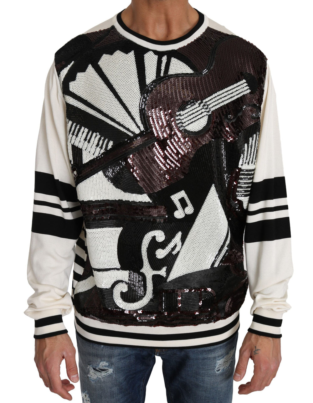 Absolutely stunning, 100% Authentic, brand new with tags Dolce & Gabbana New York Jazz sequined crew neck silk pullover sweater.