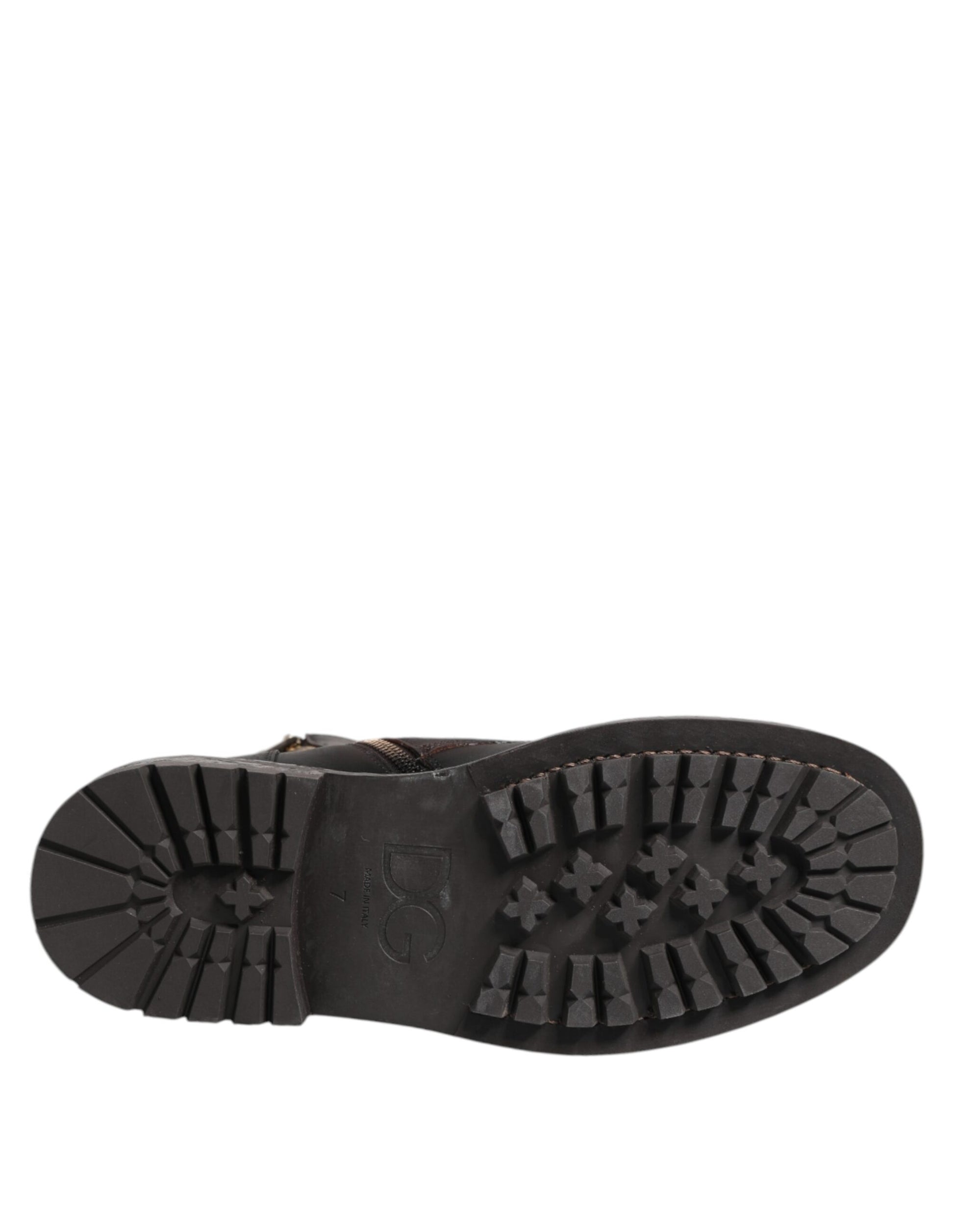 Dolce & Gabbana Mørkebrune Lærstøvletter Med Snøring Og Midtpålegg