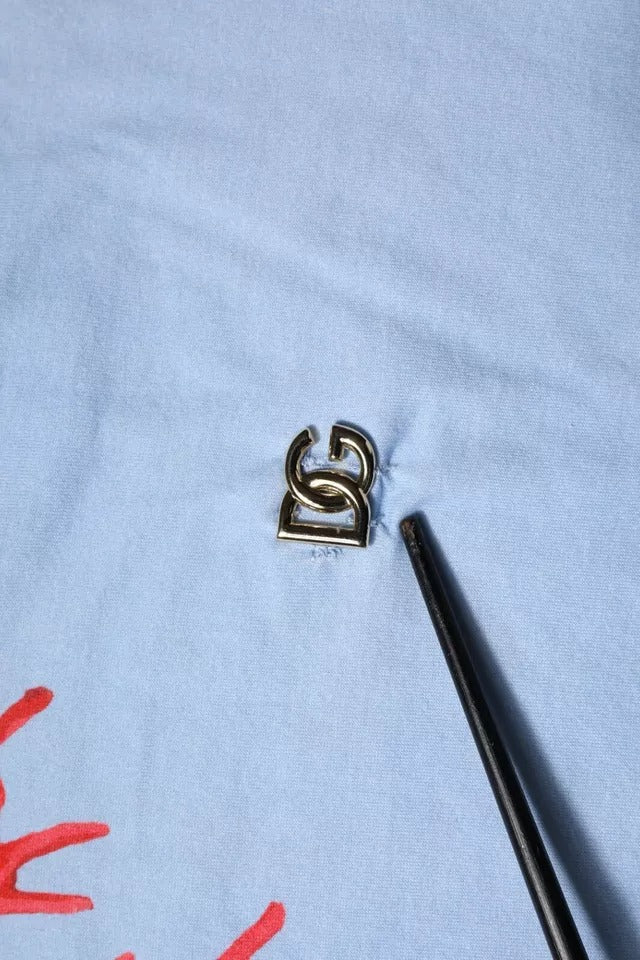 Dolce & Gabbana Lyseblå Korall Bomull Herre T-skjorte med Rund Hals