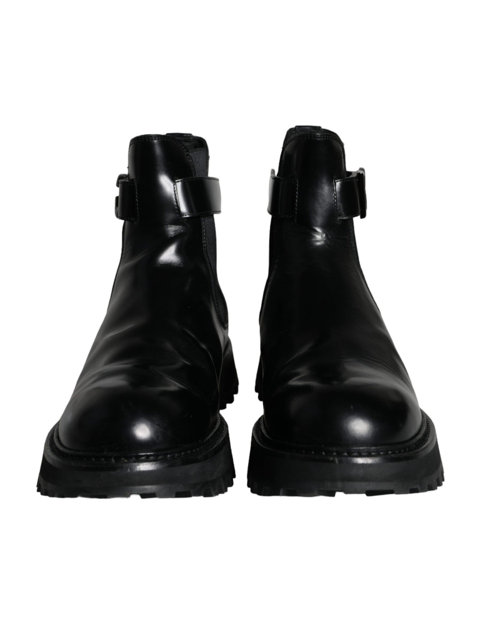 Dolce & Gabbana Black Belted DG Logo Men Chelsea Boots Shoes