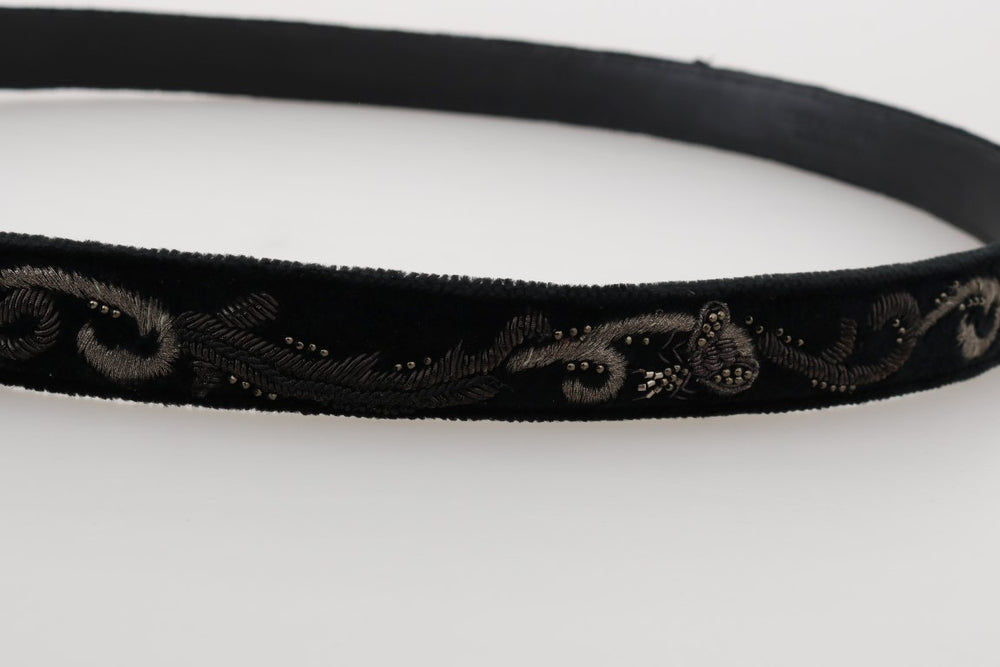 Color: Black Buckle: Gray metal buckle Embroidery: Metal fiber and studs Material: 10% Leather, 90% Cotton (leather inner, cotton outer)