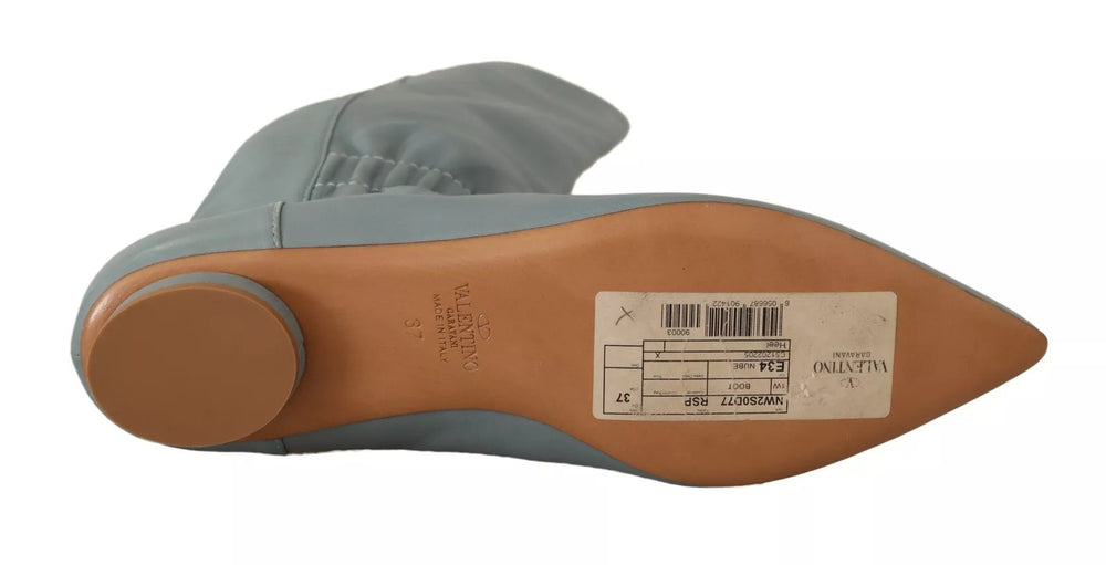 Valentino Blue Leather Elastic Flats Pull On Knee High Boots Shoes