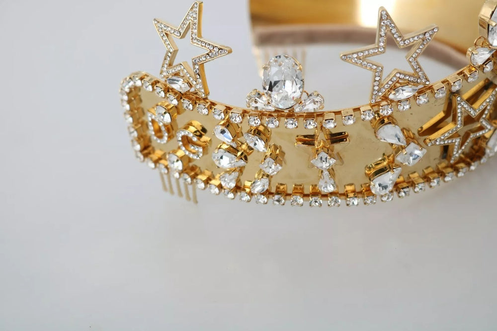 Dolce & Gabbana Gold Crystal Star STRASS Crown Logo Tiara Diadem