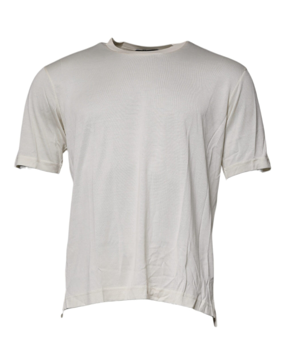 Dolce & Gabbana Off White Silk Crew Neck Short Sleeve T-shirt