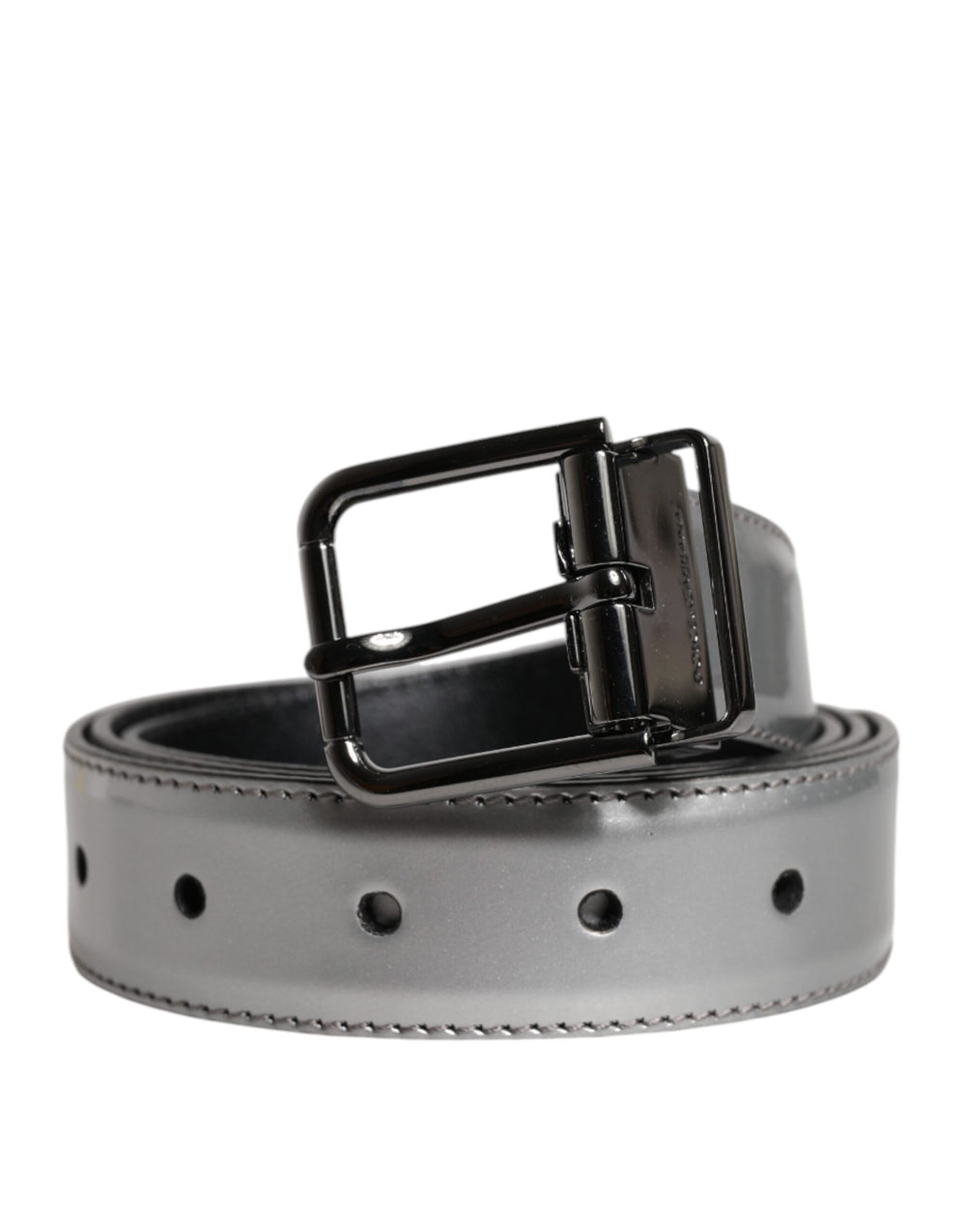 Dolce & Gabbana Silver Leather Classic Metal Logo Buckle Belt