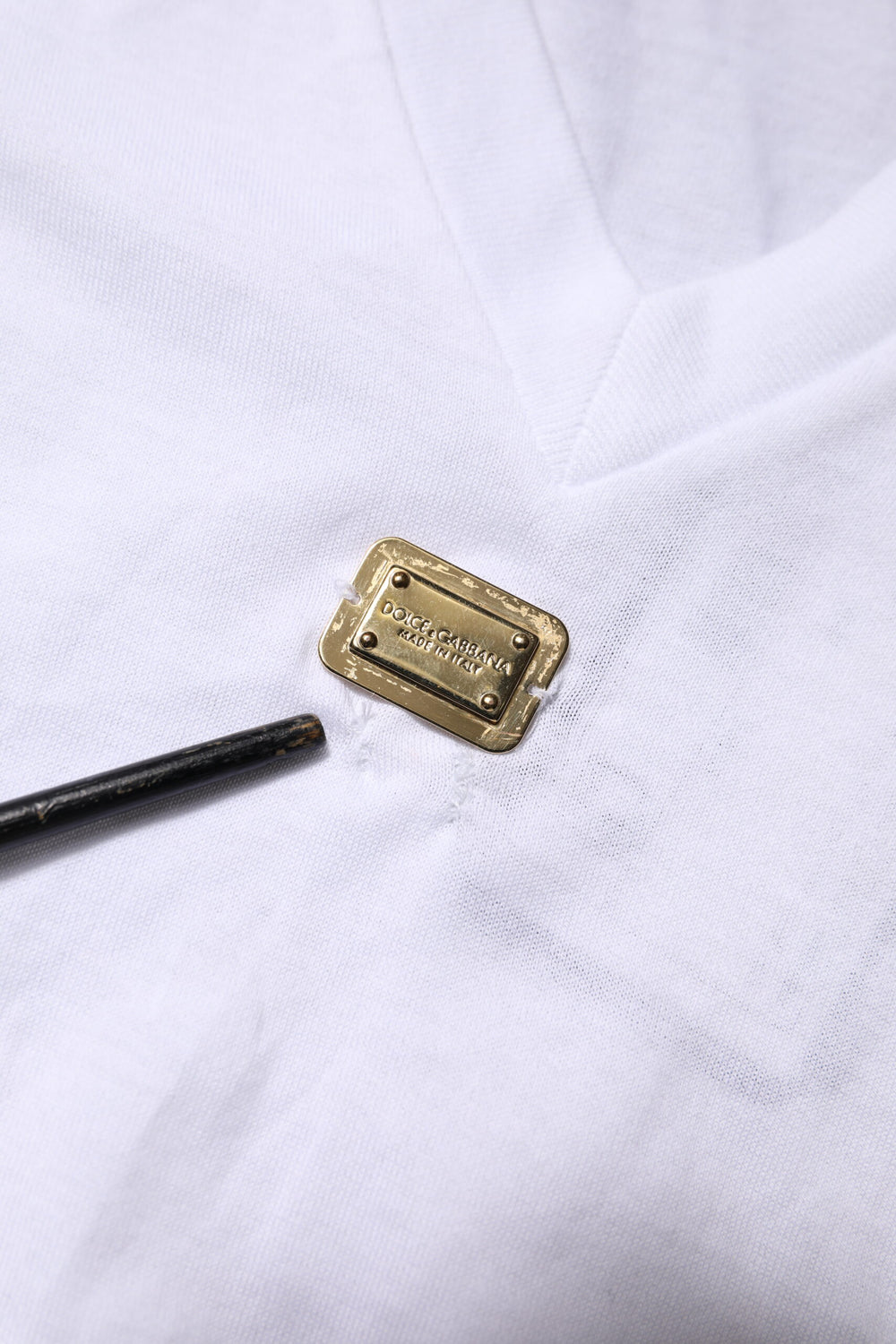 Dolce & Gabbana White Cotton Short Sleeve V-Neck Top T-shirt