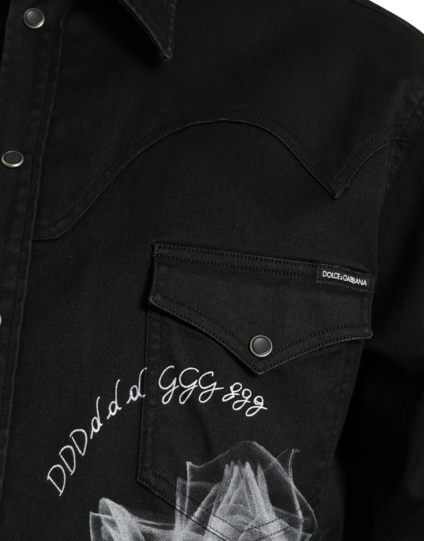 Dolce & Gabbana Svart Blommig Bomullsskjorta Med Krage