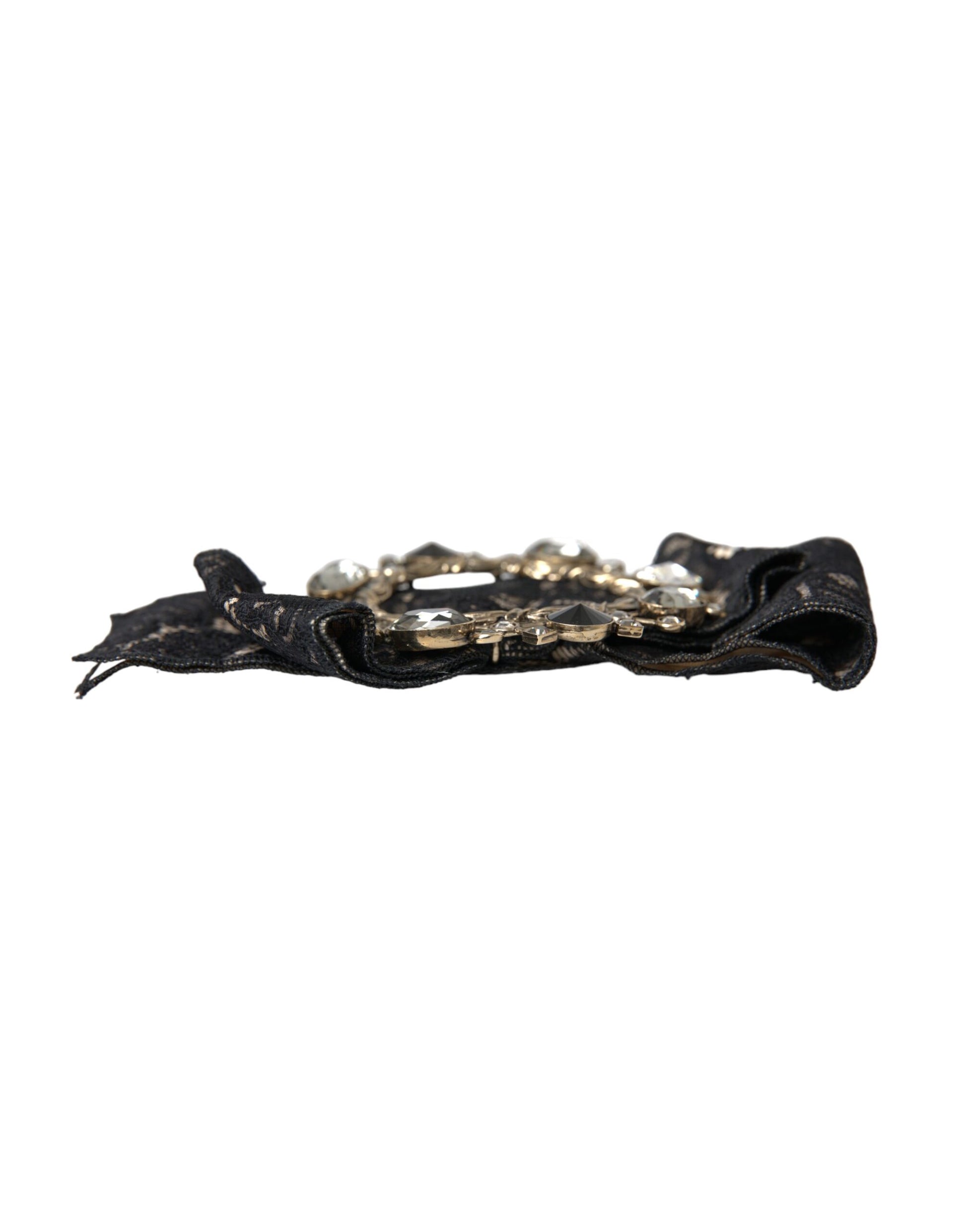 Dolce & Gabbana Svart Spets Kristall Handgjord Brosch Hårnål