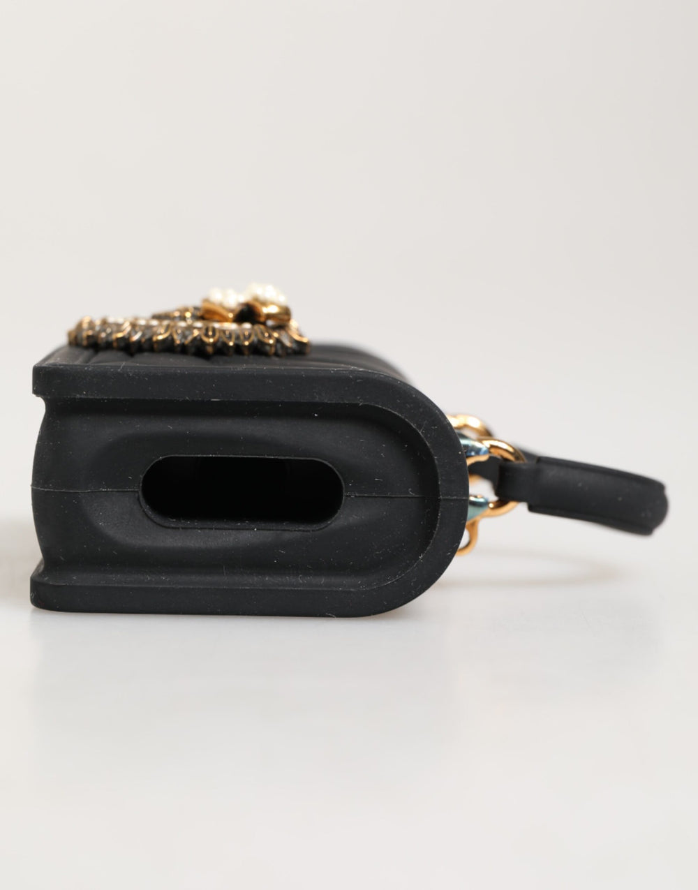 Dolce & Gabbana Svart Silikon Devotion Hjärtfodral Handväska Airpod-fodral