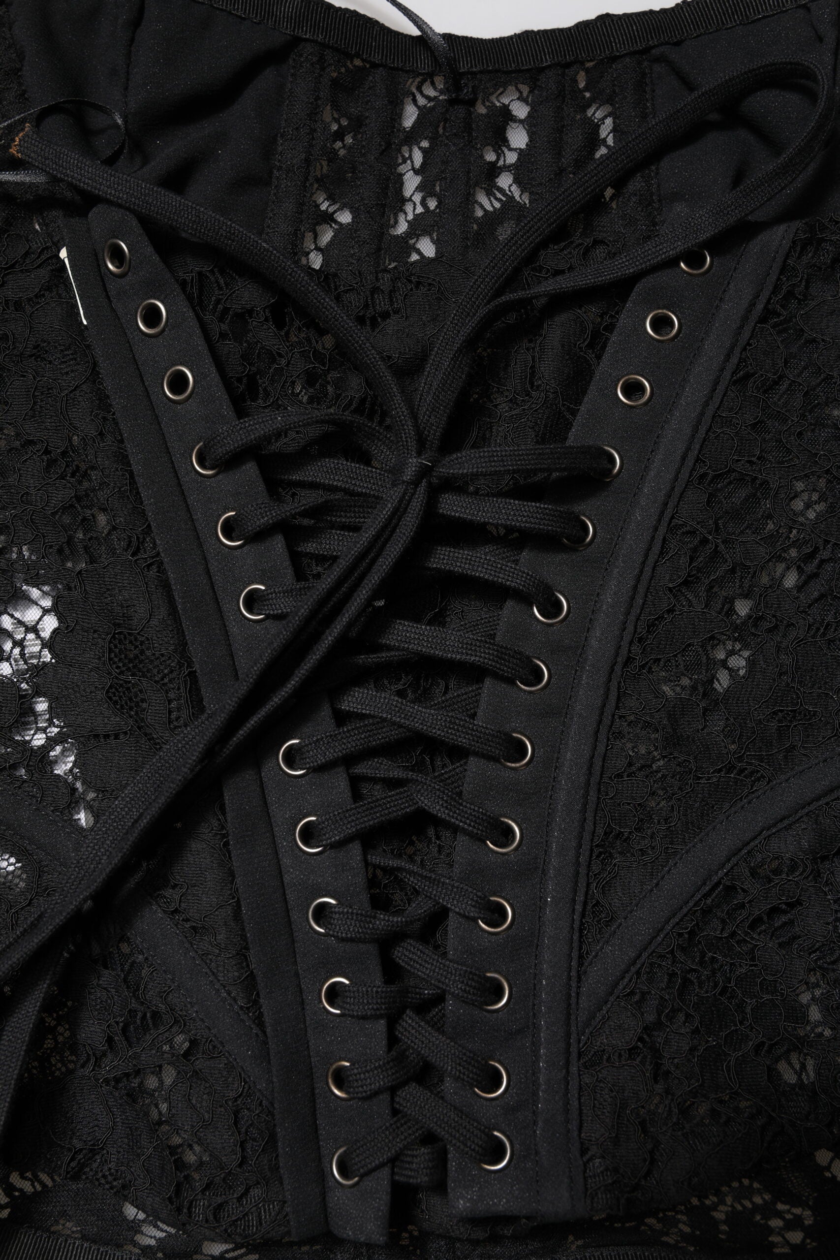 Dolce & Gabbana Svart Axelbandslös Blommig Spets Bustier Cropped Topp