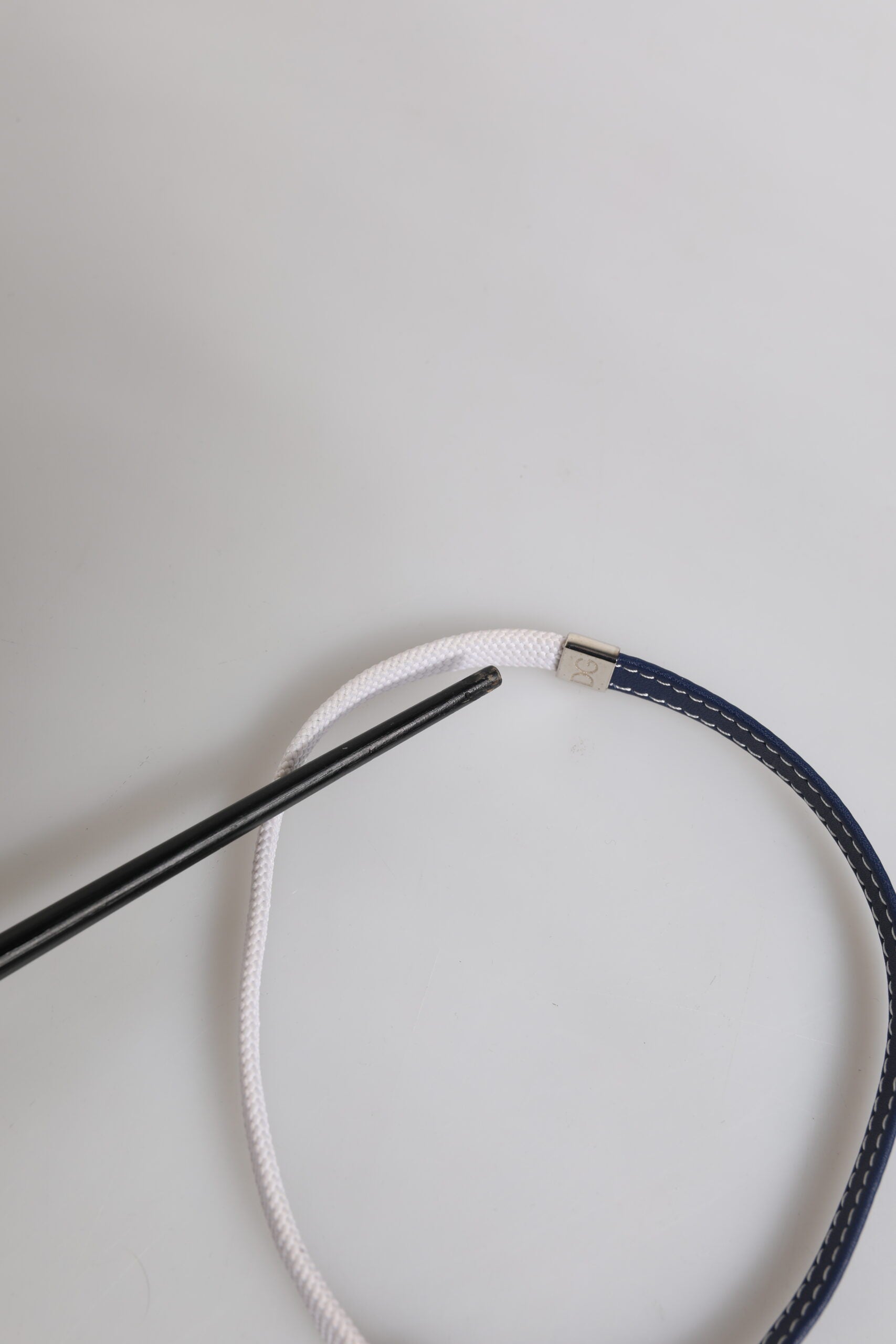 Dolce & Gabbana Blåvitt Läderarmband med Graverat DG Silvertonat Spänne