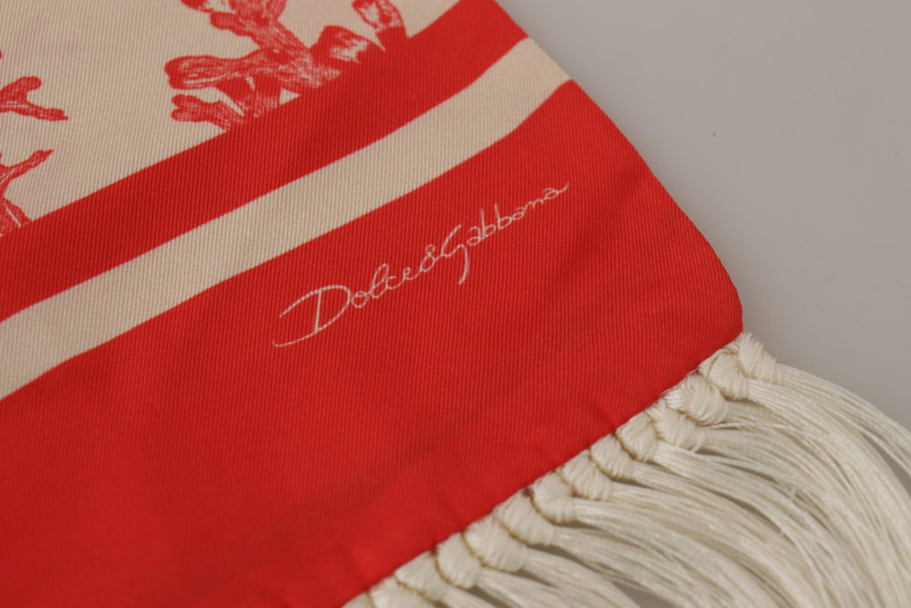 Vacker helt ny med etiketter, 100 % äkta Dolce & Gabbana herrhalsduk Material: 100% siden Färg: Röd koralltryckt Logotypdetaljer Tillverkad i Italien STORLEK: 140 cm X 14 cm